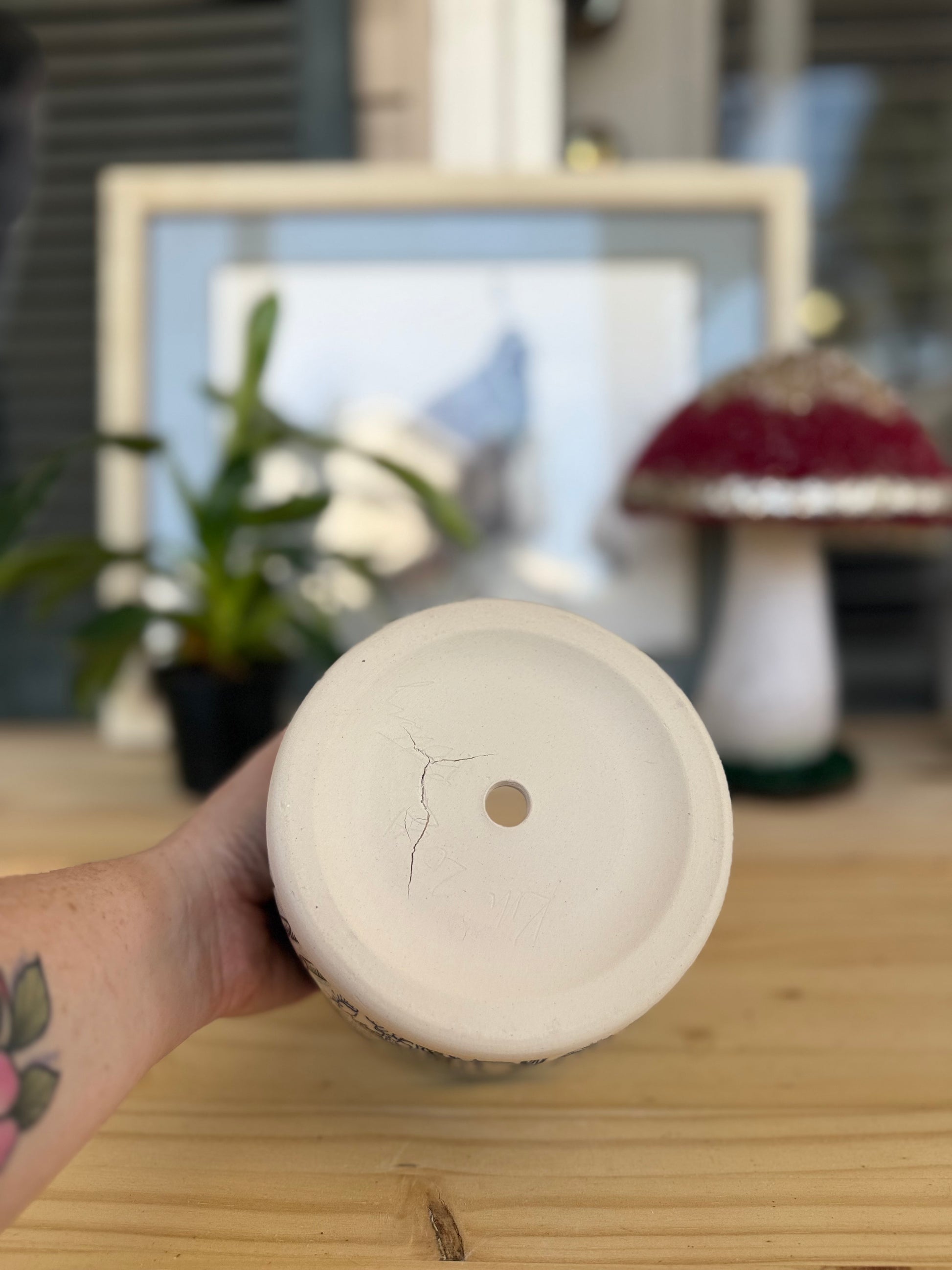 Has cracks around the drainage hole ✨FOR THIS REASON IS BEING SOLD AS SECOND AND AT A DISCOUNT✨